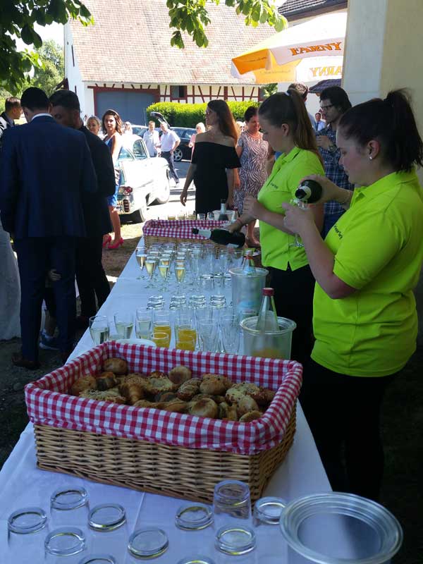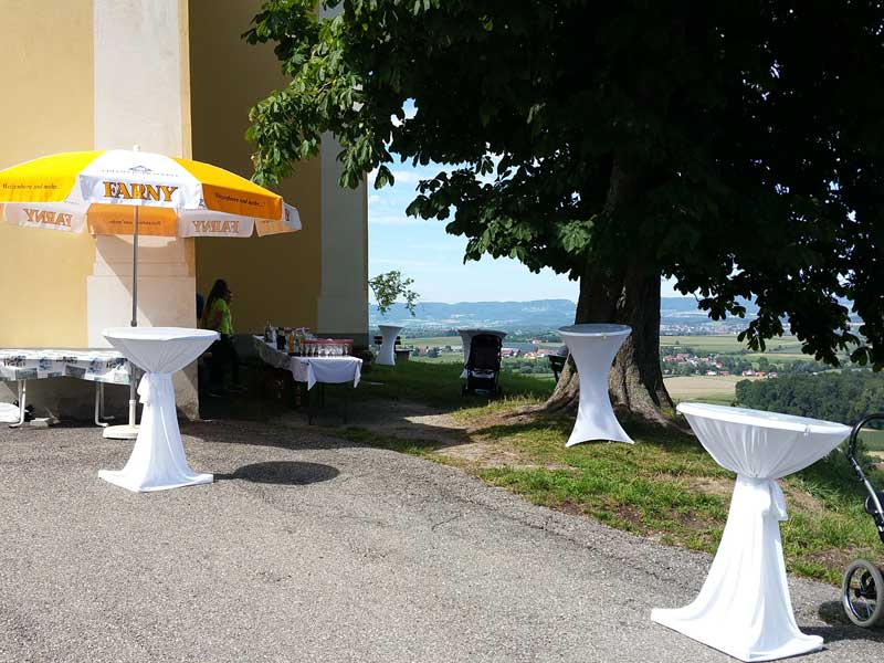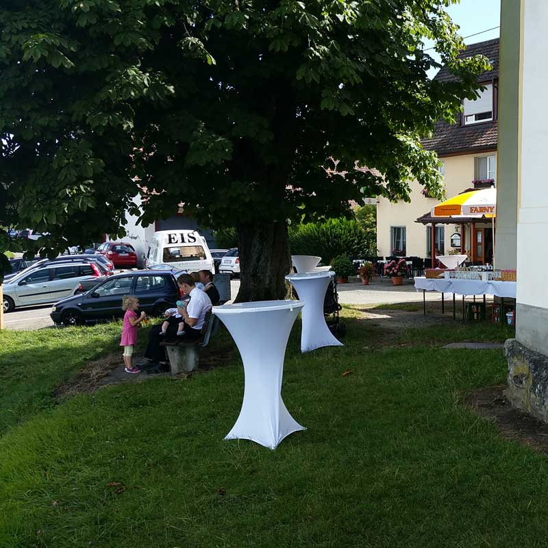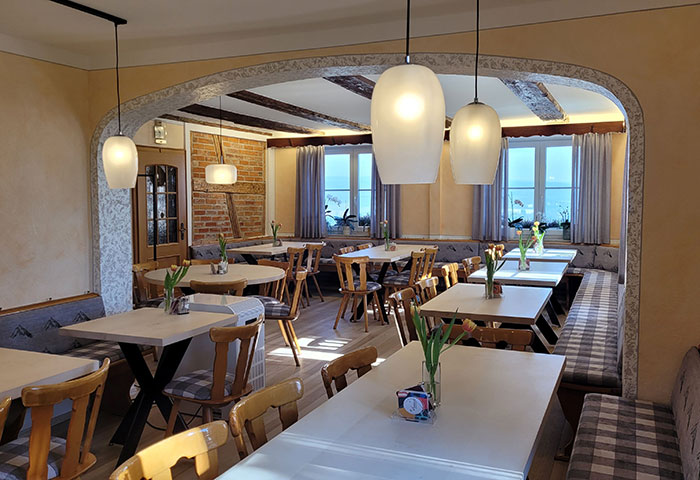 Im Sommer öffnen wir unsere beliebte Panorama-Sonnenterrasse. Gerade Wanderer, Radfahrer und Ausflügler kehren dann gerne hier ein und genießen den einzigartigen Weitblick über das Bodensee-Hinterland. Dabei bietet unsere Terrasse Platz für maximal 40 Personen. Auch Hochzeitsgesellschaften nutzen diese idyllische Kulisse für einen stimmungsvollen Sektempfang direkt an der Wallfahrtskirche Baitenhausen. Sprechen Sie uns einfach an – gerne richten wir für Sie Empfänge, familiäre Feste und geschäftliche Veranstaltungen aus.